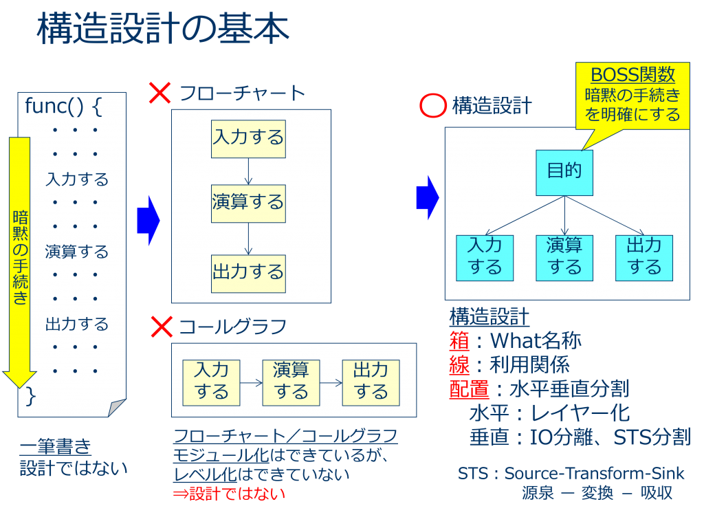 | 説明 | 静的な構造の欠如「一筆書き」や「クローン」は、動くコード断片の手順を書いているだけで、設計はなされていません。